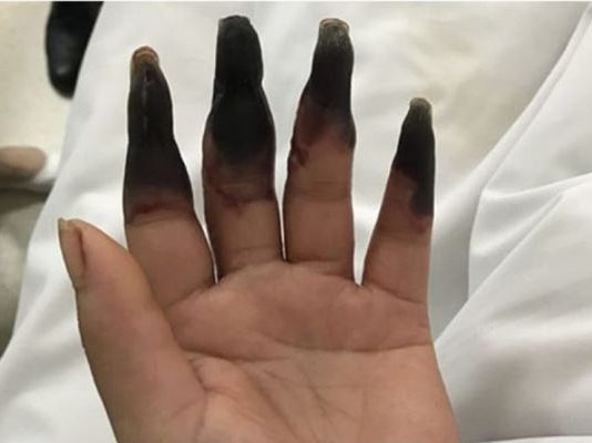சிறிய காயத்தை சாதாரணமாக விட்ட பெண் : எட்டு விரல்களும் அழுகிப்போன பரிதாபம் : எச்சரிக்கை!!