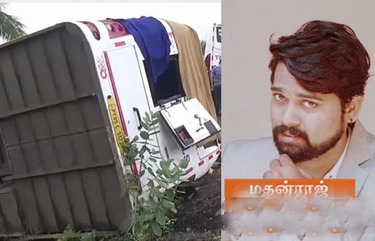 பிரபல தமிழ் துணை நடிகர் மதன்ராஜ் சென்ற சொகுசுப் பேருந்து விபத்துகுள்ளானதால், அவர் சம்பவ இடத்திலே பரிதாபமாக உடல் நசுங்கி பலியானார்.