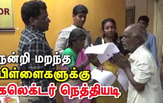 பெற்றோரை பிச்சையெடுக்க வைத்த பிள்ளைகள் : கலெக்டரிடம் கண்ணீர்விட்டு கதறிய பரிதாபம்!!