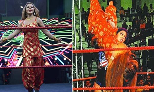 பிரபல ஹிந்தி நடிகை ராக்கி சாவந்த், சண்டிகாரில் நடந்த மல்யுத்த...