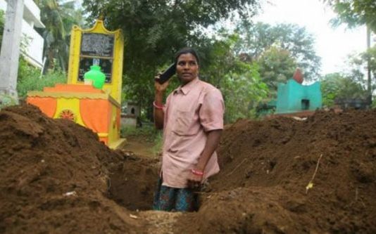 தமிழகத்தில் 5000-க்கும் மேற்பட்ட அனாதை பிணங்களை அடக்கம் செய்த பெண்ணின் புகைப்படம் சமூகவலைத்தளங்களில் வைரலாகி வருவதால், அவரை மக்கள் வெகுவாக பாராட்டி வருகின்றனர்.