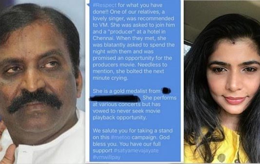 பாடகி சின்மயி ட்விட்டரில் கடந்த சில நாட்களாக கவிஞர் வைரமுத்து மீது அடுக்கடுக்கான புகார்களை தெரிவித்து வருகிறார். மேலும், சுவிட்சர்லாந்து ஹொட்டலில் தன்னை தவறாக அழைத்ததாகவும் கூறியுள்ளார்.