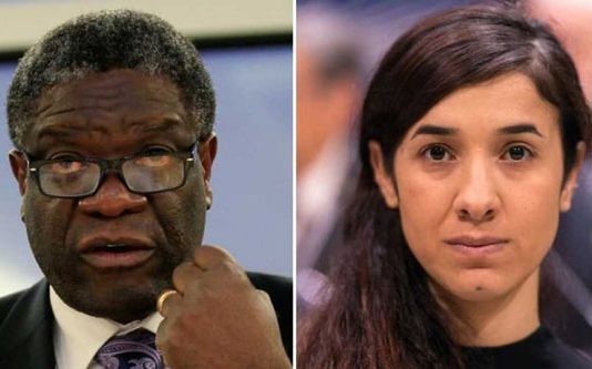 மகளிர் நல மருத்துவர் ஒருவருக்கும், தீவிரவாதிகளால் கடத்தப்பட்டு கூட்டுப்பாலியல் வன்முறைக்கு ஆளான ஒரு பெண்ணுக்கும் 2018ஆம் ஆண்டுக்கான பாலியல் வன்முறைக்கு எதிராக போராடியதற்கான நோபல் பரிசு வழங்கப்பட்டுள்ளது.