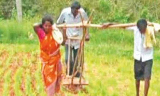 இந்தியாவில் தனது நிலத்தை உழுவதற்கு டிராக்டர் அல்லது மாடுகளை பூட்ட பணமில்லாததால், தனது மனைவி மற்றும் மகனை விவசாயி ஒருவர் ஏரில் பூட்டி நிலத்தை உழுத சோக சம்பவம் நடந்துள்ளது.