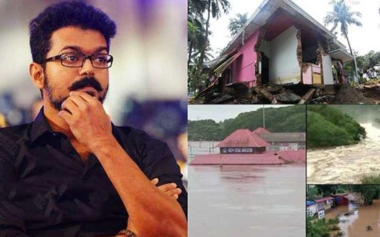 பிரபல திரைப்பட நடிகரான விஜய் வெள்ளத்தால் பாதிக்கப்பட்ட கேரள மக்களுக்காக 70 லட்சம் ரூபாய் நிதியுதவி கொடுத்துள்ளார்.