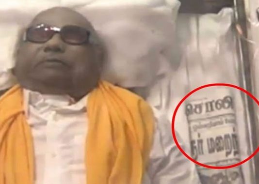 கருணாநிதியின் சவப்பெட்டிக்குள் இருந்த அவரது முதல் குழந்தை : நெகிழ்ச்சி புகைப்படம்!!