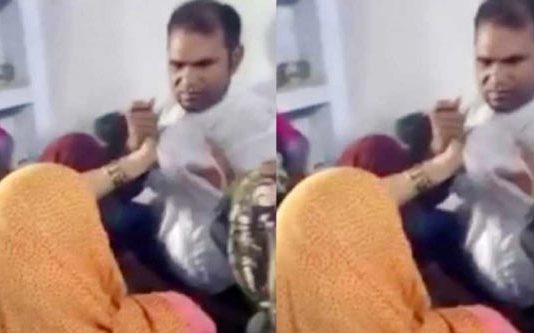 உத்தரப்பிரதேச மாநிலத்தில் மாணவிகள் ஆடை மாற்றுவதை மறைந்திருந்து பார்த்த தலைமை ஆசிரியரை பொதுமக்கள் செருப்பால் அடித்துத் துவைத்தனர்.
