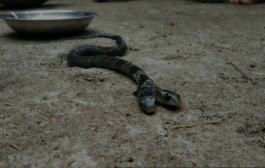முதன்முறையாக இரட்டைத்தலை கொண்ட பாம்பை பார்த்த கிராமமக்கள், புராணக்கதைகளை நம்பிக்கொண்டு, அதனை வனத்துறை அதிகாரிகளிடம் ஒப்படைக்க மறுத்துள்ளனர்.