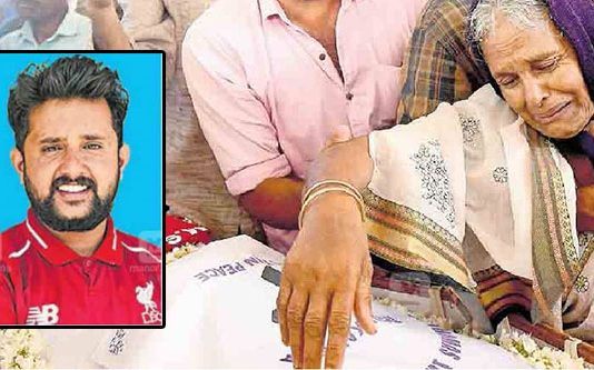 இந்தியாவின் கேரள மாநிலத்தில் உதைப்பந்து ஆட்டத்தினிடையே சு ருண்டு வி ழுந்து ம ரணமடைந்த இளைஞரின் இறுதி அஞ்சலி ஊர்வலத்தில் மொத்த கிராமமும் கண்ணீருடன் பங்கேற்றுள்ளது.
