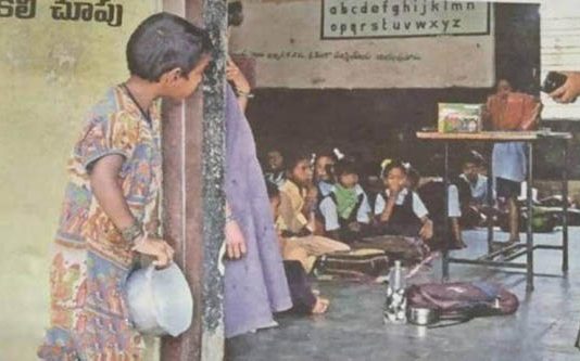 இந்தியாவில் பசியுடன் கையில் தட்டு வைத்த படி, வக்குப்பறைக்கு வெளியே நின்று கொண்டிருந்த சிறுமி தற்போது அதே பள்ளியில் சேர்ந்துள்ளார்.