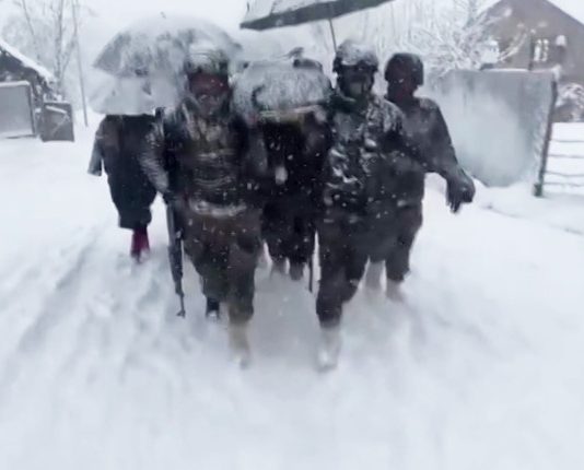 பி ர சவத்திற்கு பின் வீடு திரும்ப முடியாமல் தவித்த பெண்ணை 6 கி.மீ. தூரம் வீட்டிற்கு தூ க் கிச் சென்ற ராணுவ வீரர்கள்!!