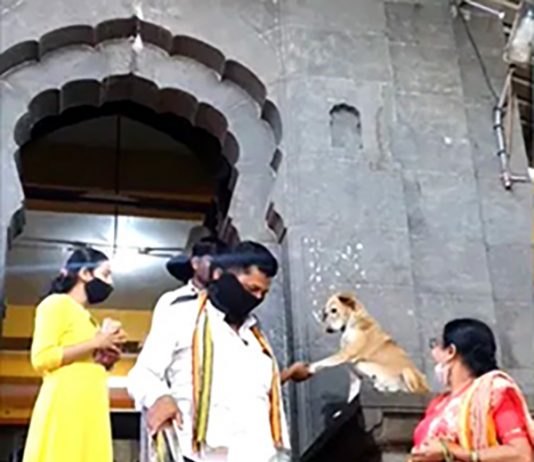 இந்தியாவில் வினோதம்: பக்தர்களை வரவேற்று ஆசி வழங்கும் நாய்! வைரலாகும் நெகிழ்ச்சி வீடியோ!!