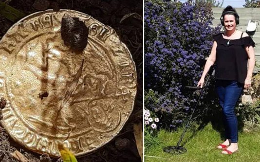 பிரித்தானியாவில் தோட்டம் ஒன்றில் மெட்டல் டிடெக்ருடன் சுத்தம் செய்து கொண்டிருந்த பெண்ணுக்கு சுமார் 2500 பவுண்ட் மதிப்புள்ள தங்கநாணயம் கிடைத்துள்ளது.