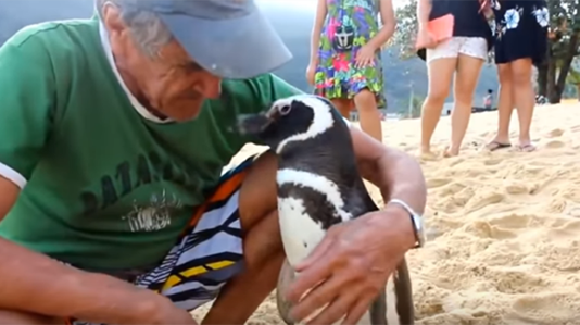 பிரேசிலின் ரியோடி ஜெனிரோவில் அன்றையை தினம் கடலில் அலைகளின் வேகம் அதிகமாக இருந்தது. ஏராளமான பென்குயின்கள் நீந்த முடியாமல் திணறின. ஆண் பென்குயின் ஒன்று கடற்பாறையில் சிக்கிக் கொண்டு தவித்தது.