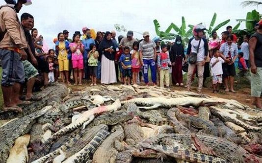இந்தோனேஷியாவில் உறவினரை கடித்துக் குதறிய முதலையைப் பழிவாங்கும் நோக்கில், பண்ணையில் வளர்க்கப்பட்டு வந்த 300-க்கும் மேற்பட்ட முதலைகளை ஒரு கும்பல் வெட்டிச் சாய்த்துவிட்டுச் சென்றுள்ளது.