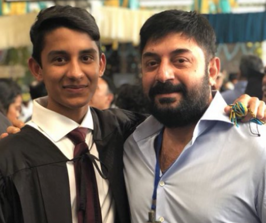 நடிகர் அரவிந்த்சாமியின் மகனின் புகைப்படத்தை முதன் முறையாக ட்விட்டரில் வெளியிட்டுள்ளார்.அரவிந்த்சாமியின் மகன் ஐபி டிப்ளமோ படித்து முடித்துள்ளார். இதை அரவிந்த்சாமி ட்விட்டரில் பெருமையாக தெரிவித்துள்ளார்.