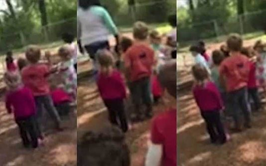 அமெரிக்காவில் விதிமுறைகளை மீறியதாக கூறி, நான்கு வயது சிறுவன் மீது மற்ற மாணவர்களை வைத்து கல்லை வீச செய்த சம்பவம் அதிர்ச்சியை ஏற்படுத்தியுள்ளது.