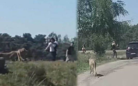 நெதர்லாந்து நாட்டில் திறந்தவெளி விலங்கியல் பூங்காவைச் சுற்றி பார்க்க வந்த பிரான்ஸ் நாட்டுப் பயணிகள் சிலர் ஆபத்தை உணராமல் காரில் இருந்து வெளியே இறங்க எங்கிருந்தோ பாய்ந்துவந்து அவர்களை சிறுத்தை துரத்திய பதறவைக்கும்...