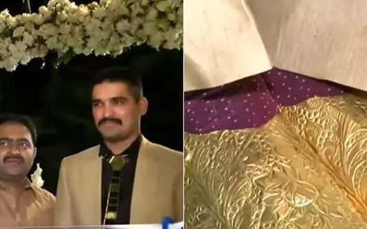 தங்கத்தால் செய்யப்பட்ட காலணிகள் : 25 லட்சம் ரூபாய் ஆடை: இவர்தான் தங்கமான மாப்பிள்ளை!!