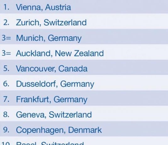 உலகளவில் வாழ்க்கை தரத்தில் சிறந்து விளங்கும் நகரங்களின் பட்டியலை Mercer என்னும் நிறுவனம் ஆண்டு கணக்கெடுப்பு நடத்தி வெளியிட்டுள்ளது.