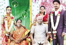 திருச்சியில் தந்தையின் மெழுகு சிலை முன்பு திருமணம் ந டத்தப்பட்டு மணமக்கள் பெற்றோர் காலில் வி.ழு.ந்து ஆசிர்வாதம் பெற்றதை கண்டு உறவினர்கள் நெகிழ்ச்சி அடைந்தனர்.