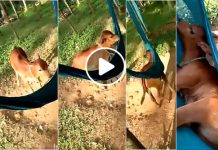 குழந்தையைப் போல் தொட்டிலில் படுத்து தூங்கும் கன்றுக்குட்டி.. வீடியோ உள்ளே!